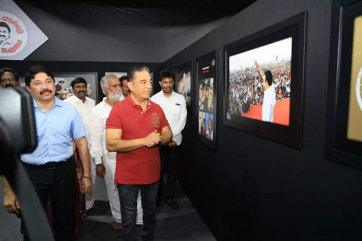 கமல்ஹாசன் அவர்கள் பங்கேற்று தொடங்கி வைத்து, புகைப்பட கண்காட்சியை பார்வையிட்டார். இந்நிகழ்வில் தயாநிதிமாறன் எம்.பி, திரைப்பட நடிகர் மற்றும் கவிஞர் ஜோ மல்லூரி, சட்டமன்ற உறுப்பினர்கள் மற்றும் கழக நிர்வாகிகள் உடனிருந்தனர் என்று குறிப்பிட்டிருக்கிறார்.