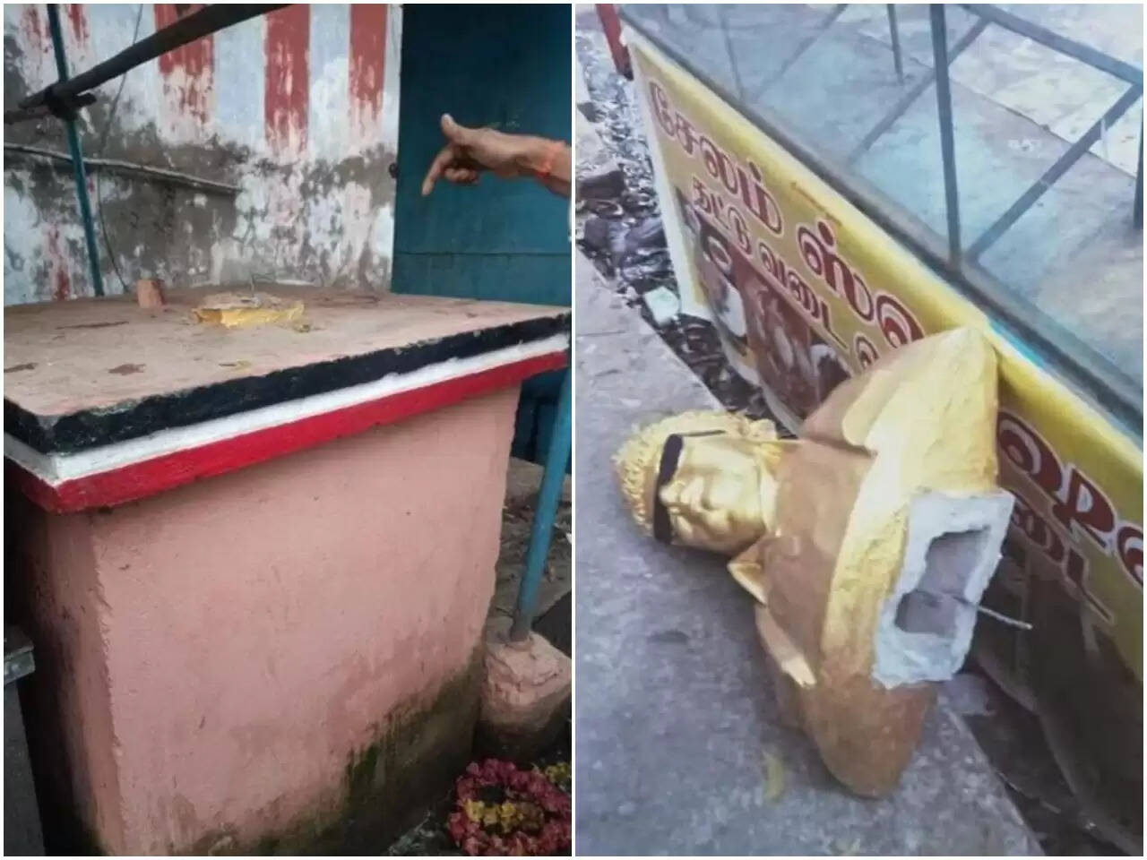 குடிபோதையில் வடக்குவாசலை சேர்ந்த சேகர் சிலையை சேதப்படுத்தியது சிசிடிவி காட்சி மூலம் கண்டுபிடிக்கப்பட்டது. இந்த சிலை உடைப்புக்கு அதிமுக தொண்டர்கள், தலைவர்கள் என பலரும் கண்டனம் தெரிவித்து வருகின்றனர். அந்த வகையில் அதிமுக பொதுச்செயலாளர் என சொல்லிக்கொள்ளும் சசிகலா வெளியிட்டுள்ள அறிக்கையில், "திமுக தலைமையிலான அரசு பொறுப்பேற்றுக் கொண்டது முதல், தலைவர்களின் சிலைகள் சேதப்படுத்துவது, அவமரியாதை செய்வது போன்ற சமூக விரோதச் செயல்கள் தொடர்கதையாக நடந்து வருகிறது.