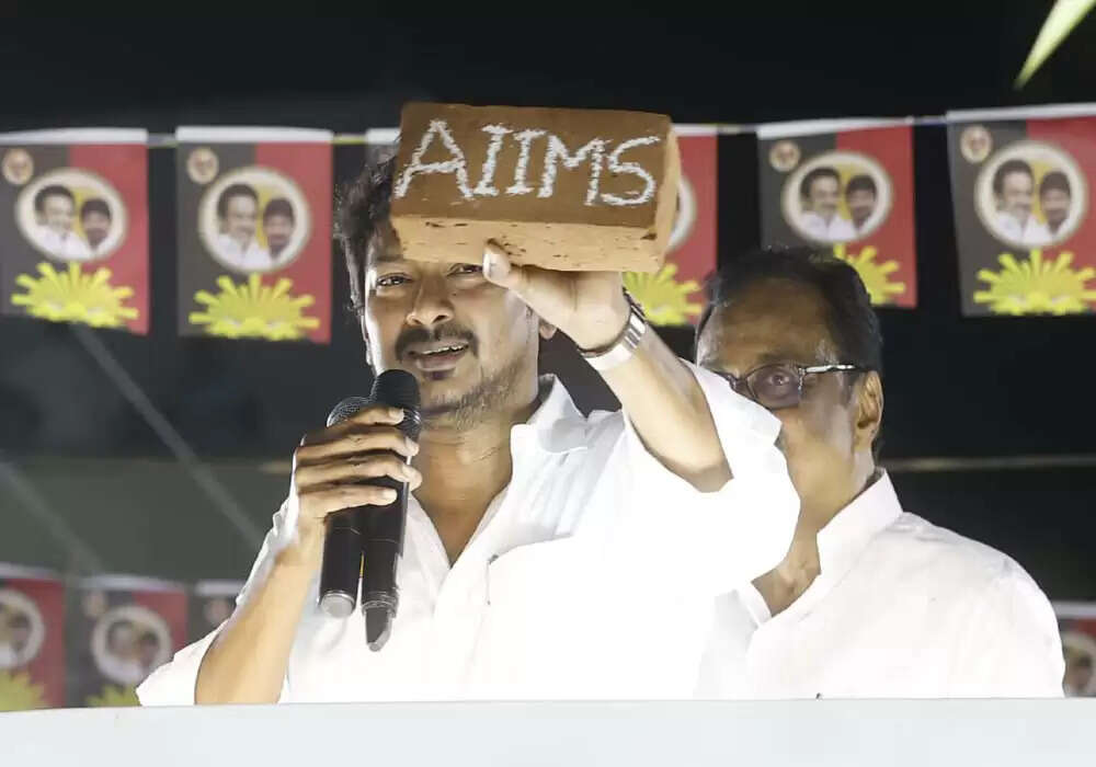 மத்திய அரசு மதுரையில் எய்ம்ஸ் மருத்துவமனை கட்டுவதற்கான அடிக்கல் நாட்டு விழாவை நடத்தியது. ஆனால் அதன் பின்னர் கட்டுமான பணிகள் எதுவும் நடைபெறாமல் இருக்கின்றன. இதனால் கடந்த சட்டமன்றத் தேர்தல் பிரச்சாரத்தில் ஒத்த செங்கல்லை தூக்கிக்கொண்டு இதுதான் எய்ம்ஸ் மருத்துவமனை.. எய்ம்ஸ் மருத்துவமனை என்று சொல்லி பிரச்சாரம் செய்தார் உதயநிதி ஸ்டாலின்.