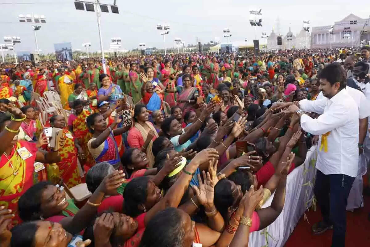 அமைச்சர் உதயநிதி ஸ்டாலின் மேடைக்கு வரும் முன்பாகவே வலுக்கட்டாயமாக அழைத்து வரப்பட்ட பெண்கள் திமுகவினரிடம் இருந்து தப்பித்து ஓட்டம் பிடித்துள்ளனர் என்று செய்தி பதிவு செய்திருக்கிறது நமது எம்ஜிஆர் நாளிதழ்.