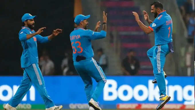 358 எடுத்தால் வெற்றி என்ற கடின இலக்குடன் ஆடிய இலங்கை அணிக்கு ஆரம்பமே அதிர்ச்சியாக அமைந்தது. இன்னிங்ஸின் முதல் ஓவரிலே பதுன் நிசங்காவை வீழ்த்தினார் பும்ரா.அதன் பிறகு வந்த 3 முக்கிய பேட்ஸ்மன்கள் அடுத்தடுத்து சிராஜ் பந்தில் ஆட்டமிழந்தனர். அதன்பிறகு வந்து வீச வந்த சமி தன் பங்கிற்கு மேலும் 5 விக்கெட்டுகளை வீழ்த்தி இலங்கை சுருட்டினார்.19.4 ஓவர் முடிவில் இலங்கை அணி அனைத்து விக்கெட்டுகளையும் இழந்து 55 ரன்கள் மட்டுமே எடுத்தது. இதன் மூலம் இந்திய அணி 302 ரன்கள் வித்தியாசத்தில் இமாலய வெற்றி பெற்று அரைஇறுதியை உறுதி செய்தது. ஐந்து விக்கெட்டுகளை வீழ்த்திய சமி ஆட்டநாயகன் விருது வென்றார்.