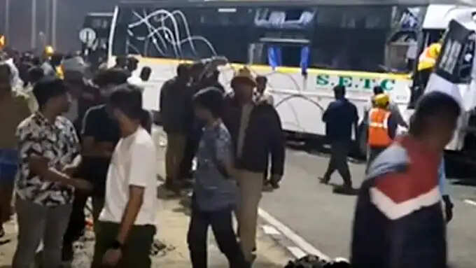 திருப்பத்தூர் மாவட்டம் வாணியம்பாடி செட்டியப்பனூர் கூட்டுச்சாலை பகுதியில் சென்னை - பெங்களூர் தேசிய நெடுஞ்சாலையில் அதிகாலை பெங்களூரில் இருந்து சென்னை நோக்கி சென்ற அரசு பேருந்து திடீரென கட்டுப்பாட்டை இழந்து தடுப்பு சுவர் மீது மோதி சென்னை பெங்களூர் சாலைக்கு சென்று அங்கே சென்னையில் இருந்து பெங்களூர் நோக்கி வந்து கொண்டிருந்த தனியார் சொகுசு பேருந்து மீது நேருக்கு நேர் பயங்கரமாக மோதி விபத்துக்குள்ளானது.