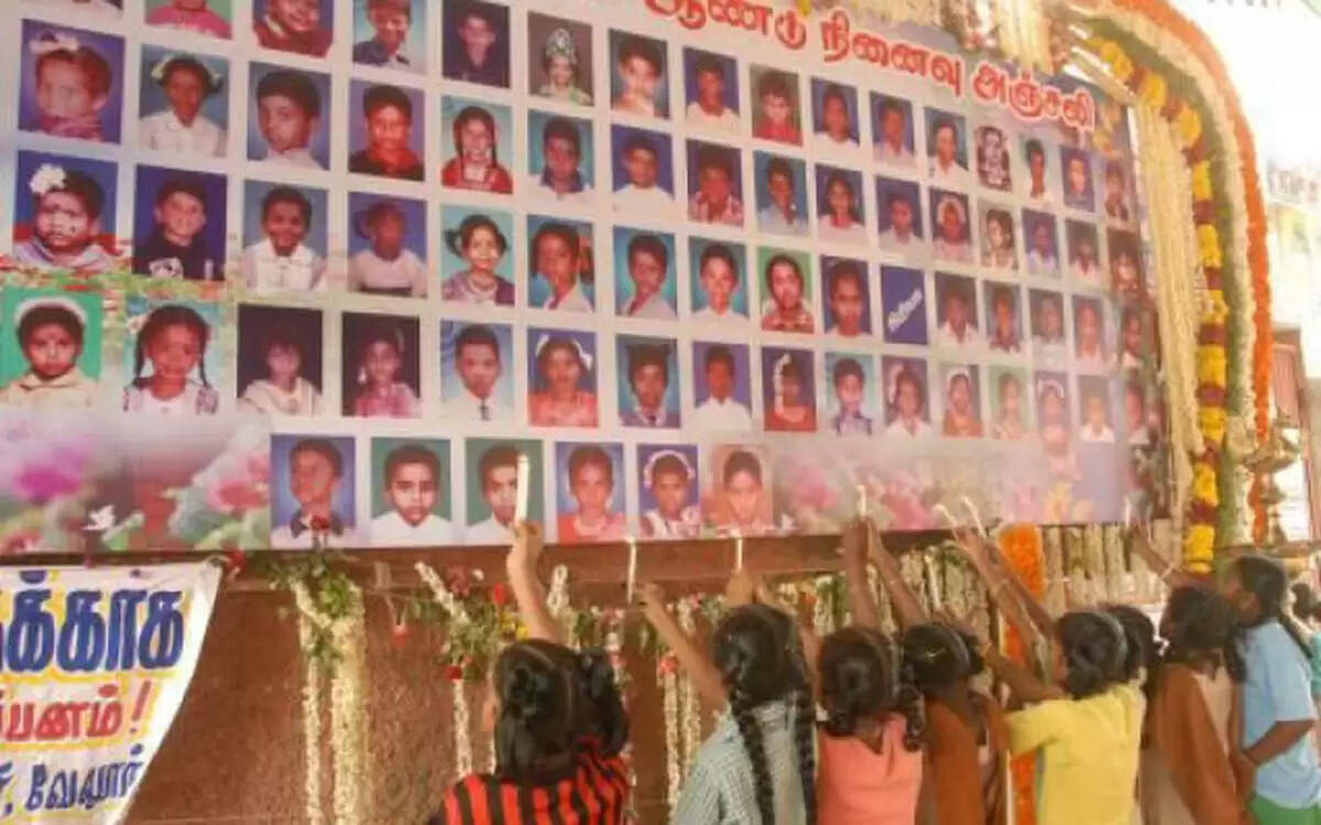 கடந்த 2004 ஆம் ஆண்டு ஜூலை 16ஆம் தேதி கும்பகோணம் காசிராமன் தெரு ஸ்ரீ கிருஷ்ணா உதவி பெறும் பள்ளியில் திடீர் தீ விபத்து ஏற்பட்டது. இந்த தீ விபத்தில் 94 குழந்தைகள் தீயில் கருகி பரிதாபமாக உயிரிழந்தனர். அத்துடன் 18 குழந்தைகள் காயமடைந்தனர். இந்த துயர சம்பவம் தமிழகம் முழுவதும் சோகத்தை ஏற்படுத்தியது ஆண்டுதோறும் கும்பகோண்டம் தீ விபத்தில் இறந்த குழந்தைகளின் நினைவு தினம் ஜூலை 16ஆம் தேதி அனுசரிக்கப்பட்டு வருகிறது. அந்த வகையில் இன்று 21ம் ஆண்டு நினைவு தினத்தை ஒட்டி குழந்தைகளை இழந்த பாதிக்கப்பட்ட குடும்பங்கள் சார்பில் நினைவு தினம் அனுசரிக்கப்பட்டது.