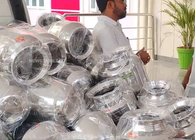உரிய ஆவணம் இன்றி எடுத்துச் செல்லப்பட்ட 300 சில்வர் குடங்கள் பறிமுதல்