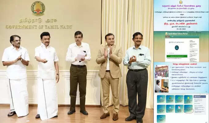 தமிழ்நாடு முதலமைச்சர் திரு. மு.க.ஸ்டாலின் அவர்கள் இன்று (23.9.2022) தலைமைச் செயலகத்தில், வருவாய் மற்றும் பேரிடர் மேலாண்மைத் துறை சார்பில் எங்கிருந்தும் எந்நேரத்திலும்' என்ற இணையவழி சேவையின் மூலமாக பொதுமக்கள் எங்கிருந்தும் பட்டா மாறுதலுக்கு விண்ணப்பிக்கும் வசதி மற்றும் நகர்ப்புர புல வரைபடங்களை இணையவழியில் பதிவிறக்கம் செய்து கொள்ளும் வசதி ஆகியவற்றை தொடங்கி வைத்தார்.