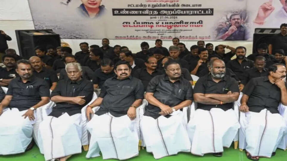 கள்ளக்குறிச்சி கள்ளச் சாராய மரணங்கள் குறித்து சரியான நடவடிக்கை எடுக்க தவறிய திமுக அரசை கண்டிப்பதாகக் கூறி, சென்னை எழும்பூரில் அதிமுக சார்பில் உண்ணாவிரதப் போராட்டம் நடைபெற்றது. எதிர்க்கட்சித் தலைவர் பழனிசாமி தலைமையில் அதிமுக எம்எல்ஏக்கள் அனைவரும் சென்னை எழும்பூர் ராஜரத்தினம் விளையாட்டரங்கம் அருகில் இன்று காலை 9 மணி முதல் உண்ணாவிரதப் போராட்டத்தில் ஈடுபட்டனர். இந்த உண்ணாவிரதப் போராட்டத்துக்கு தேமுதிக பொதுச் செயலாளர் பிரேமலதா விஜயகாந்த் நேரில் வந்து ஆதரவு தெரிவித்தார். இந்த உண்ணாவிரதப் போராட்டம் நிறைவு பெறுவதற்கு முன்பு எதிர்க்கட்சித் தலைவர் எடப்பாடி பழனிசாமி பேசியதாவது:-