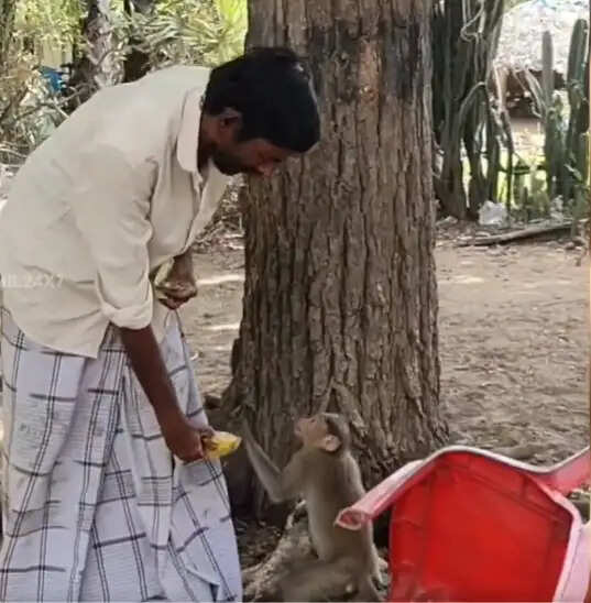 ”வாழைப்பழம் வேண்டாம்.. நுங்கு தான் வேணும்”... வியாபாரியிடம் அடம் பிடித்த சுட்டி குரங்கு