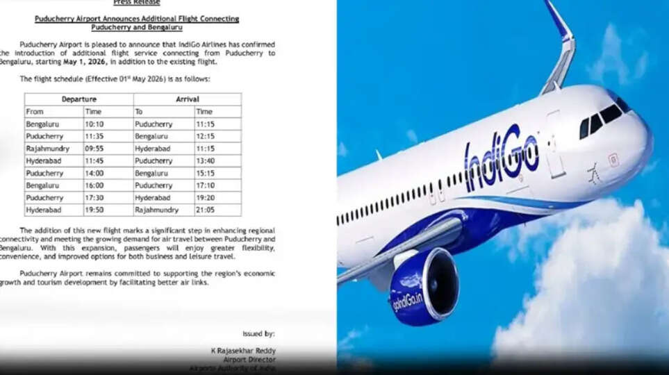 இதுதொடர்பாக புதுச்சேரி விமான நிலைய இயக்குநர் ராஜசேகர் ரெட்டி வெளியிட்டுள்ள செய்திக்குறிப்பில், புதுச்சேரிக்கு இண்டிகோ புதிய விமான சேவைகளை வரும் மே 1ந் தேதி முதல் இயக்குகிறது. பெங்களூரில் இருந்து காலை 10.10 மணிக்கு புறப்படும் விமானம் காலை 11.15க்கும் புதுச்சேரி வந்தடையும். அந்த விமானம் புதுச்சேரியில் இருந்து காலை 11.35 மணிக்கு புறப்பட்டு பெங்களூருக்கு காலை 12.15 மணிக்கு சென்றடையும். ராஜமுந்திரியில் இருந்து காலை 9.5து மணிக்கு புறப்படும் விமானம் ஹைதராபாத்துக்கு காலை 11.15 மணிக்கு சென்றடைந்து அங்கிருந்து 11.45 மணிக்கு புறப்பட்டு புதுச்சேரிக்கு மதியம் 1. 40 மணிக்கு வந்தடையும். அந்த விமானம் மதியம் 2 மணிக்கு புறப்பட்டு பெங்களூருக்கு மதியம் 3.15 மணிக்கு சென்றடையும். பெங்களூரில் இருந்து மாலை 4 மணிக்கு புறப்பட்டு புதுச்சேரிக்கு மாலை 5.10 மணிக்கு வந்தடையும். புதுச்சேரியில் இருந்து மாலை 5.30 மணிக்கு புறப்பட்டு ஹைதாராபாத்தை இரவு 7.20 சென்றடையும் அங்கிருந்து இரவு 7.50 மணிக்கு புறப்பட்டு ராஜமுந்திரியை இரவு 9.05 சென்றடையும்.
