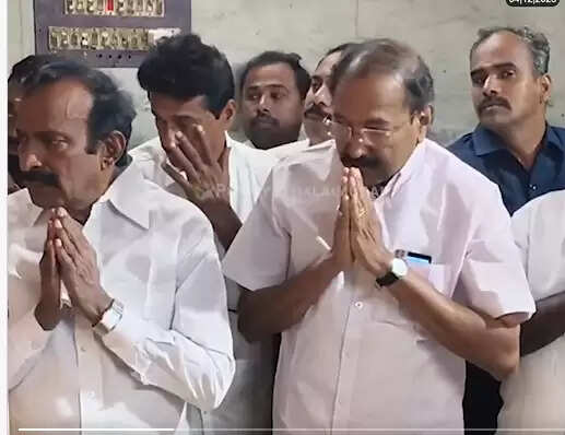 நாமக்கல் மாவட்டம் பள்ளிபாளையம் அருகே கோவிலுக்கு வந்த அமைச்சர் முத்துசாமியை, அதிமுக முன்னாள் அமைச்சர் தங்கமணி வரவேற்று அழைத்துச் சென்றதால் சலசலப்பு ஏற்பட்டது.