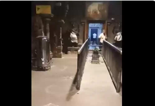 கோவை பேரூர் பட்டீஸ்வரர் கோவிலுக்கு கடந்த ஞாயிற்றுக்கிழமை இரவு காவல்துறை அதிகாரியான பாண்டியராஜன் சாமி கும்பிட வந்துள்ளார். கோவில் நடை சாத்திய நிலையில் அவரை கோவில் எலக்ட்ரிசியன் வேல்முருகன் கோவிலுக்குள் அழைத்துச் சென்று சாமி கும்பிட வைத்துள்ளார். சாமி கும்பிடும் பொழுது அவருக்கு சாமிநாத குருக்கள் திருநீறு மற்றும் பிரசாதங்கள் போன்றவற்றை வழங்கி இருக்கின்றார்.