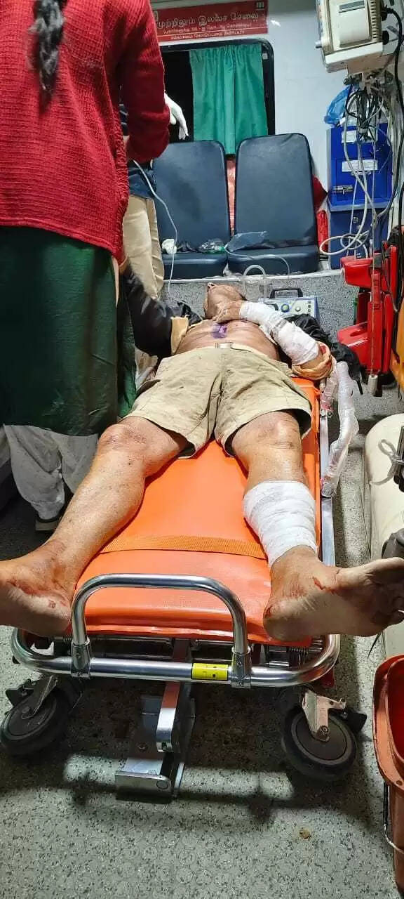 இந்நிலையில் பலத்த காயத்துடன் மீட்க்கப்பட்ட அவரை வாட்டர்பால்ஸ் எஸ்டேட் தோட்ட மருத்துவமனையில் சேர்தனர். அங்கு அவருக்கு முதலுதவி அளிக்கப்பட்டது. பின்னர் அவர் 108 ஆம்புலன்ஸ் மூலம் மேல்சிகிச்சைக்காக வனத்துறையினர் பொள்ளாச்சி கொண்டு சென்றனர். இச்சம்பவம் அப்பகுதியில் பரபரப்பை ஏற்படுத்தி உள்ளது. போலீசார் மற்றும் வனத்துறையினர் இச்சம்பவம் குறித்து விசாரிக்கின்றனர். பெயர் மைக்கேல் (60) எனவும், ஜெர்மனியைச் சேர்ந்தவர் என கூறப்படுகிறது.