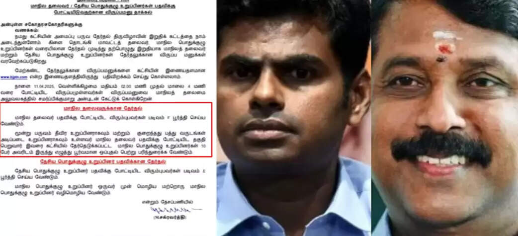 பாஜக மாநில தலைவர் பதவிக்கு போட்டியிட கட்சியில் 10 ஆண்டுகள் உறுப்பினராக இருக்க வேண்டும் என்ற விதியால் சர்ச்சை ஏற்பட்டுள்ளது. அண்ணாமலை, நயினார் நாகேந்திரன் இருவரும் பாஜகவில் உறுப்பினராகி 10 ஆண்டுகள் நிறைவடையவில்லை. அதிமுகவில் இருந்து விலகி பாஜகவில் இணைந்து 8 ஆண்டுகள் மட்டுமே ஆகும் நிலையில், நயினார் நாகேந்திரன் பாஜக மாநில தலைவர் பதவிக்கு போட்டியிடுவதில் சிக்கல் எழுந்துள்ளது.