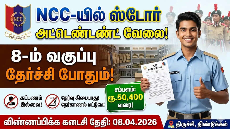 உடனே விண்ணப்பிக்கவும்..! NCC தேசிய மாணவர் படையில் Store Attendant வேலை..!