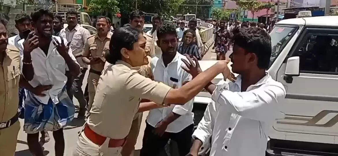 பேச்சுவார்த்தை நடத்திக் கொண்டிருக்கும் போது போராட்டக்காரர்கள் டிஎஸ்பி காயத்ரி மீது தாக்குதல் நடத்தினர். பெண் டிஎஸ்பியின் தலைமுடியை பிடித்து இழுத்து தாக்குதல் நடத்தியது தொடர்பாக நான்கு பேரை பிடித்து போலீசார் விசாரணை நடத்தினர். இதில் நெல்லிகுளத்தை சேர்ந்த பாலமுருகன் என்பவர் நேற்று கைது செய்யப்பட்டார். மேலும், இச்சம்பவத்தில் 7 பேர் கைது செய்யப்பட்ட நிலையில், தப்பியோடிய முருகேசன் என்பவரை போலீஸார் தேடி வருகின்றனர்.
