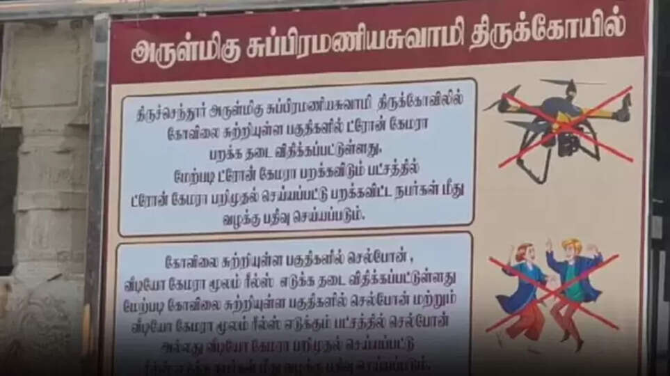 திருச்செந்தூரில் ட்ரோன் கேமரா பறக்க விட மற்றும் ரீல்ஸ்கள் எடுக்க தடை விதிக்கப்பட்டுள்ளது.