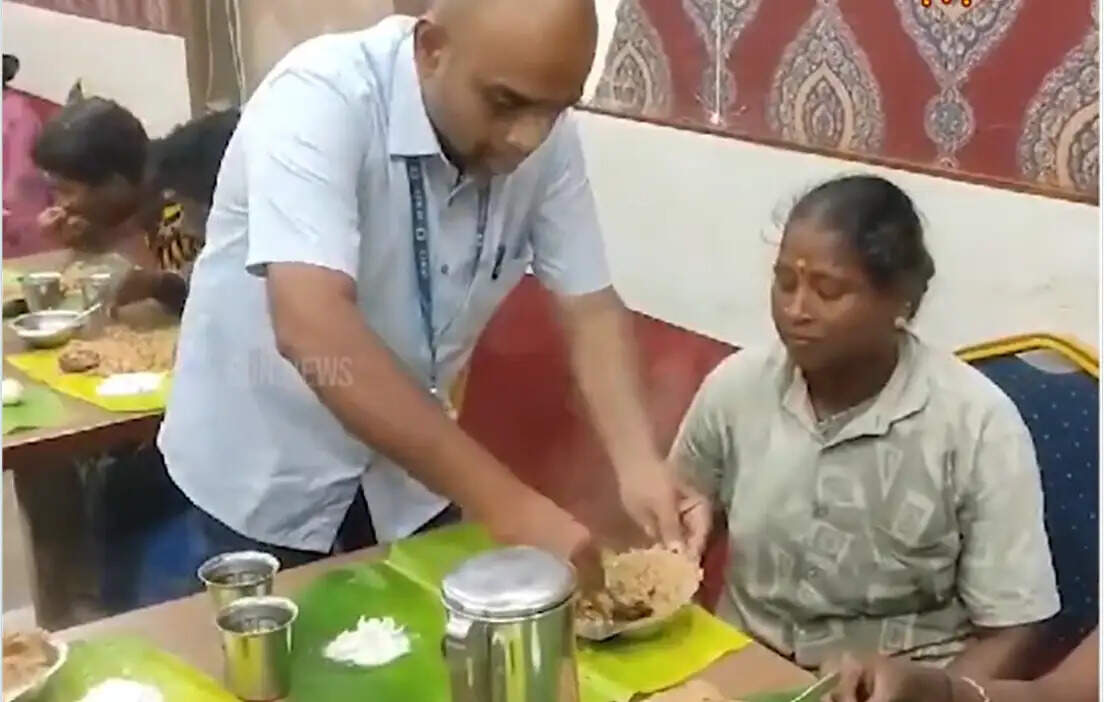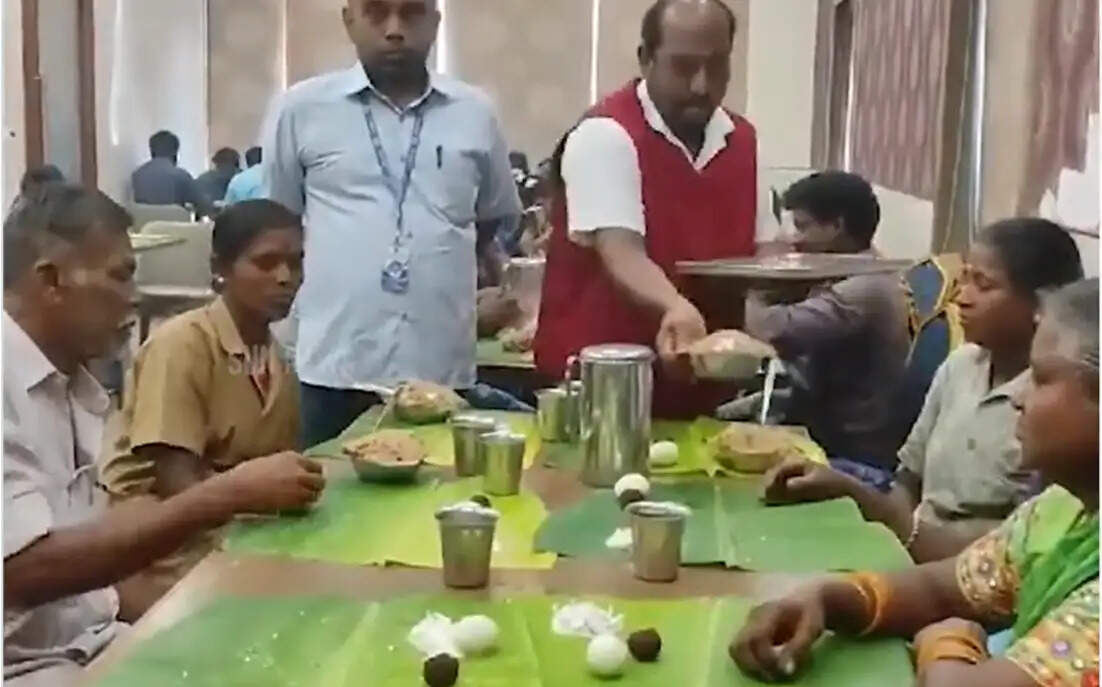நேரம் காலம் பார்க்காமல் தூய்மை பணியில் ஈடுபட்ட தூய்மை பணியாளர்களை கௌரவிக்கும் வகையில், தனியார் தொண்டு நிறுவனம் சார்பில் 100 தூய்மை பணியாளர்களை உயர்தர அசைவ உணவகத்திற்கு அழைத்துச் சென்று அவர்களுக்கு சுட சுட முட்டையுடன் மட்டன் பிரியாணி வழங்கி கௌரவிக்கப்பட்டது