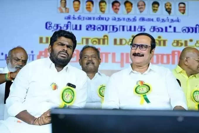 விக்கிரவாண்டி இடைத்தேர்தலுக்கான பிரமாண்ட பொதுக்கூட்டத்தில் பாமக வேட்பாளர் அன்புமணியை ஆதரித்து அன்புமணி ராமதாஸ், பாஜக மாநில தலைவர் அண்ணாமலை, ஜி.கே.வாசன், பாரிவேந்தர், தேவநாதன், ஓபிஎஸ், டிடிவி தினகரன், ஜான் பாண்டியன் உள்ளிட்டோர் பங்கேற்றனர்.