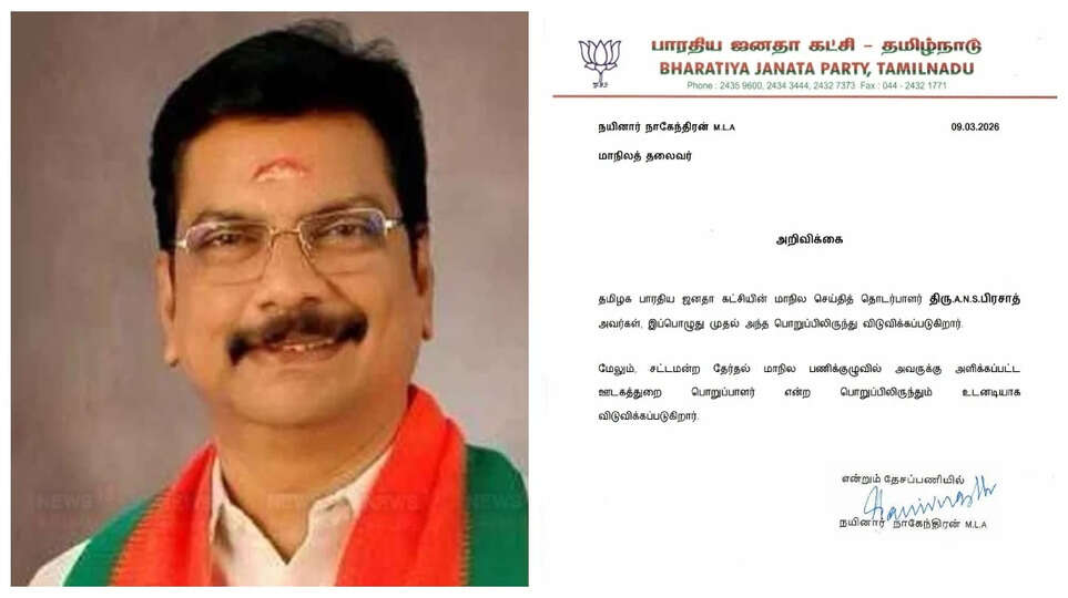 தமிழக பாஜக தலைவர் நயினார் நாகேந்திரன் வெளியிட்டுள்ள அறிவிப்பில், ஏ.என்.எஸ். பிரசாத் வகித்து வந்த மாநில செய்தித் தொடர்பாளர் பொறுப்பு மற்றும் சட்டமன்றத் தேர்தல் மாநில செயற்குழுவின் ஊடகப் பொறுப்பாளர் ஆகிய பதவிகளிலிருந்து அவர் உடனடியாக விடுவிக்கப்படுவதாகத் தெரிவிக்கப்பட்டுள்ளது. கட்சிக் கட்டுப்பாட்டை மீறியதாகவும், தலைமையின் கருத்துக்கு முரணாகச் செயல்பட்டதாகவும் கருதப்பட்டதால் இந்த நடவடிக்கை எடுக்கப்பட்டுள்ளதாகத் தெரிகிறது.