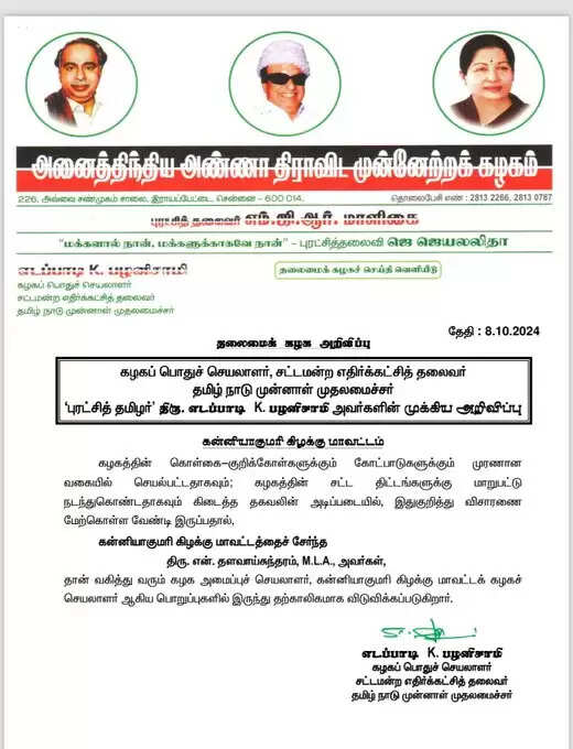 #BREAKING | என் மீது நடவடிக்கை எடுத்தால் கவலையில்லை - அதிமுக பொறுப்பிலிருந்து நீக்கப்பட்ட தளவாய் சுந்தரம் கருத்து..  #BREAKING | என் மீது நடவடிக்கை எடுத்தால் கவலையில்லை - அதிமுக பொறுப்பிலிருந்து நீக்கப்பட்ட தளவாய் சுந்தரம் கருத்து..