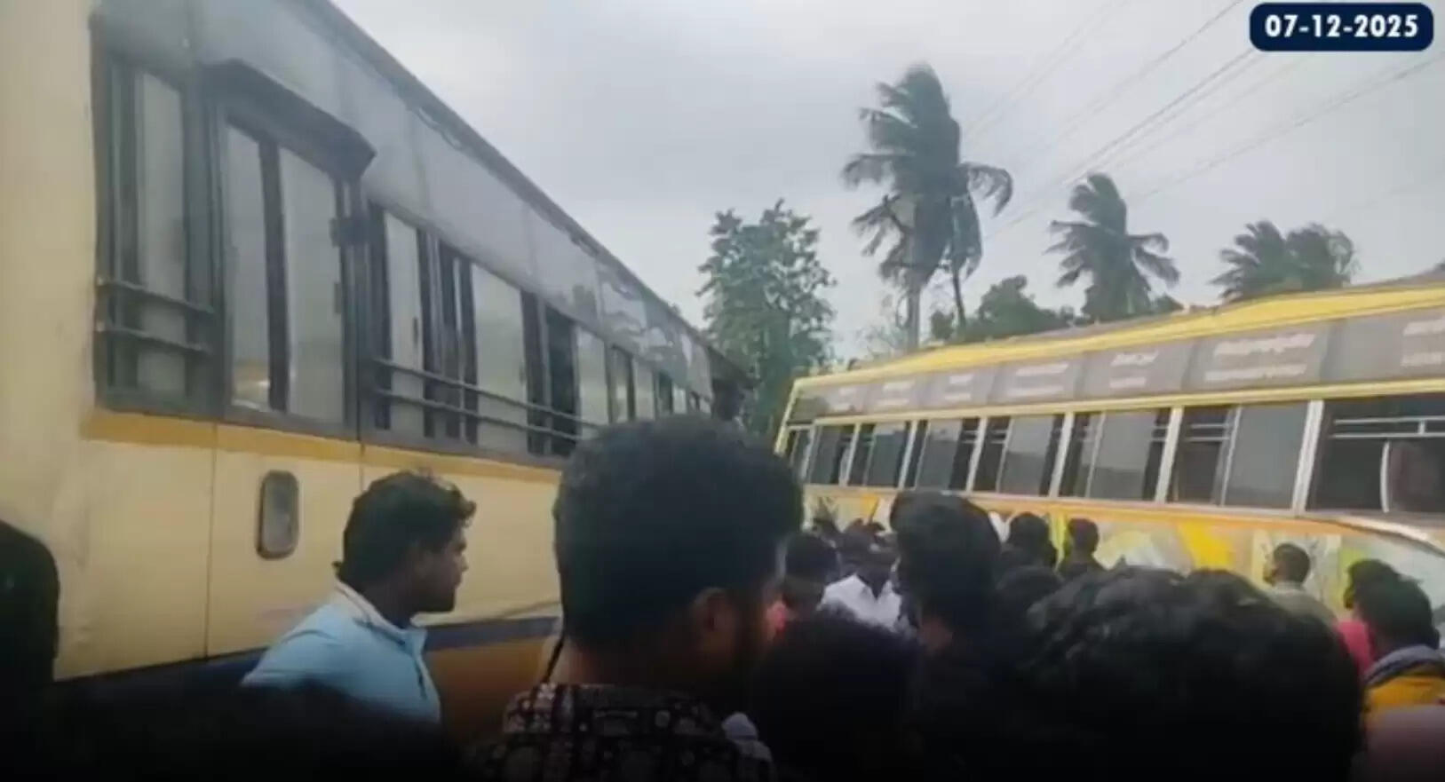 #BREAKING மன்னார்குடியில் பேருந்துகள் நேருக்கு நேர் மோதி விபத்து