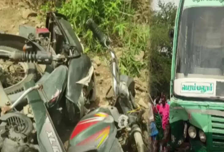 பைக் மீது பேருந்து மோதி விபத்து - கணவன், மனைவி பலி