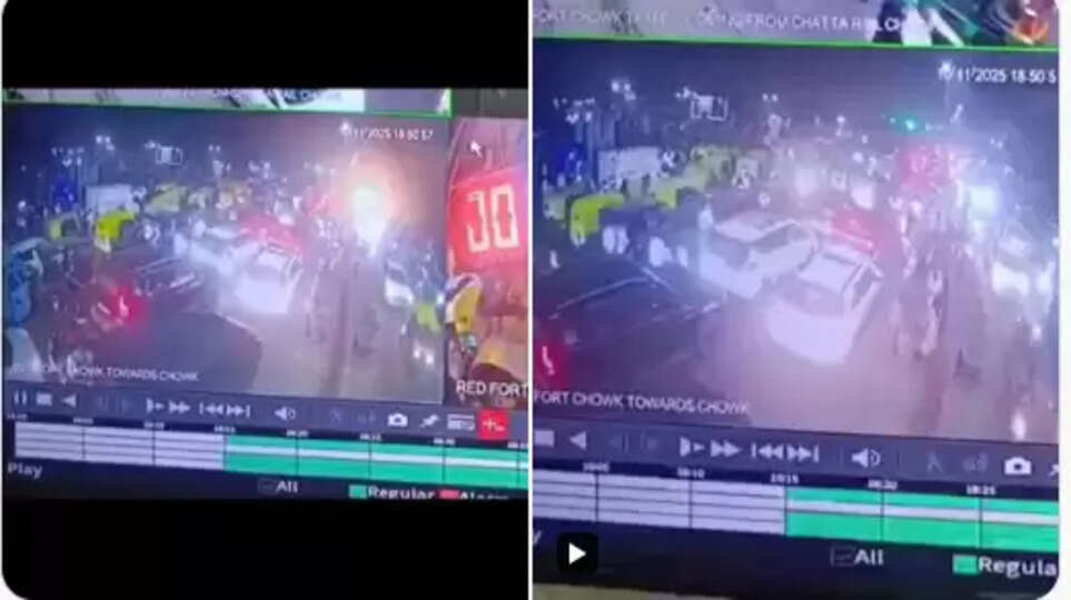 அந்த சிசிடிவி காட்சியில் செங்கோட்டை அருகே கூட்ட நெரிசலின் காரணமாக கார்கள் மெதுவாக நகர்ந்து செல்வதும், அதற்கு மத்தியில் வந்துகொண்டிருந்த அந்த கார் திடீரென வெடித்து சிதறுவதும் பதிவாகி இருக்கிறது. சரியாக, நவம்பர் 10-ஆம் தேதி மாலை 6:50 மணி 58 நொடி என்ற கால அளவில் இந்த கார் வெடிப்பு சம்பவம் நிகழ்ந்துள்ளது.
