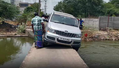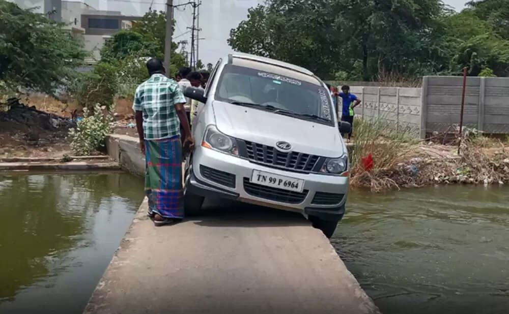 கூகுள் மேப்பை நம்பி குறுகிய பாலத்தில் வந்து சிக்கிய கார்