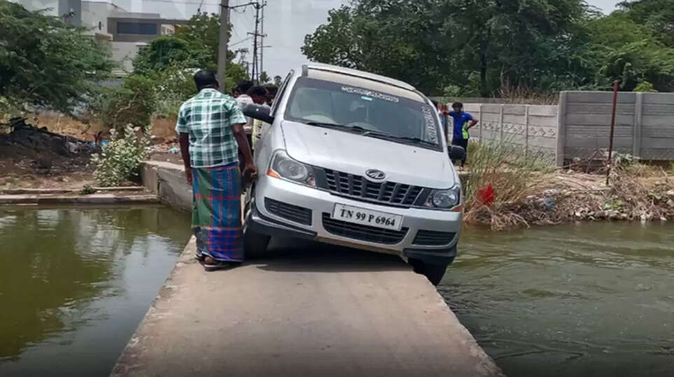 தென்கரை பாசன வாய்க்காலில் அதிக அளவு தண்ணீர் செல்லும் நிலையில் காரில் அந்தரத்தில் தொங்கியதால் அதிர்ஷ்டவசமாக அவர் உயிர் தப்பினார். உடனே அருகில் இருந்தவர்கள் அவரை மீட்டு, கிரேன் உதவியின் மூலம் காரை பாலத்தின் விளிம்பிலிருந்து தூக்கி மீட்கப்பட்டது. கூகுள் மேப் உதவியுடன் சிறிய நடைபாலத்தை கார் கடக்க முயன்று பாலத்தின் விளிம்பில் தொங்கிய சம்பவம் அப்பகுதியில் பெரும் பரபரப்பை ஏற்படுத்தி உள்ளது.