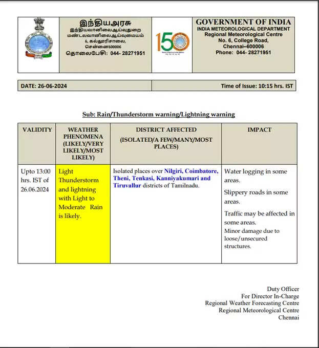 இந்நிலையில் நீலகிரி, கோவை, தேனி, தென்காசி, திருவள்ளூர் மற்றும் கன்னியாகுமரி ஆகிய 6 மாவட்டங்களில் அடுத்த 3 மணி நேரத்திற்கு மிதமான மழைக்கு வாய்ப்புள்ளதாக வானிலை ஆய்வு மையம் கூறியுள்ளது.