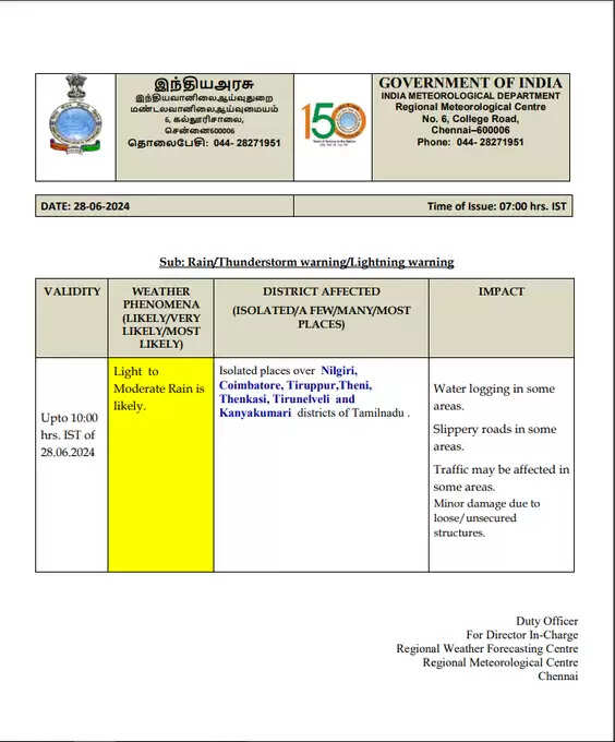 மேற்கு திசை காற்றின் வேகமாறுபாடு காரணமாக இன்றும் நாளையும் தமிழகத்தில் ஓரிரு இடங்களிலும், புதுவை மற்றும் காரைக்கால் பகுதிகளிலும் லேசானது முதல் மிதமான மழை பெய்யக்கூடும். வருகிற 30 மற்றும் 01.07.2024 ஆகிய தேதிகளில் தமிழகத்தில் ஒருசில இடங்களிலும், புதுவை மற்றும் காரைக்கால் பகுதிகளிலும் லேசானது முதல் மிதமான மழை பெய்யக்கூடும்.