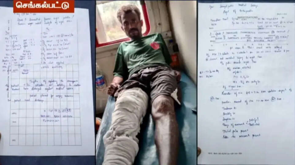 இதில் படுகாயம் அடைந்த ஹரதன் பவுரியை அங்கிருந்தவர்கள் மீட்டு ஆம்புலன்ஸ் மூலம் சிகிச்சைக்காக செங்கல்பட்டு அரசு மருத்துவமனைக்கு அனுப்பி வைத்தனர். மருத்துவமனையில் பரிசோதனை செய்ததில் ஹரதன் பவுரியின் வலது காலில் எலும்பு முறிவு ஏற்பட்டதால் முதலுதவி சிகிச்சை அளிக்கப்பட்டு கட்டு போடப்பட்டது. தொடர்ந்து அவருக்கு எக்ஸ்ரே மற்றும் எம்ஆர்ஐ ஸ்கேன் எடுக்கப்பட்டது. அதில் எலும்பு முறிவு உறுதி செய்யப்பட்டதால் அறுவை சிகிச்சை செய்ய வேண்டும் எனவும், இங்கு அறுவை சிகிச்சை செய்ய முடியாது, அதனால் அவரது சொந்த ஊரான மேற்கு வங்கத்திற்கு சென்று அறுவை சிகிச்சை செய்து கொள்ளுமாறு மருத்துவர்கள் சொன்னதாக கூறப்படுகிறது. மேலும், தமிழக அரசின் முதல்வர் மருத்துவ காப்பீட்டு திட்ட அடையாள அட்டை இல்லாததால் அறுவை சிகிச்சை செய்ய மருத்துவர்கள் மறுப்பு தெரிவித்துள்ளனர். ஹரதன் பவுரியிடம் பிரதமரின் மருத்துவ காப்பீட்டு திட்ட அட்டை இருந்தும் செங்கல்பட்டு அரசு மருத்துவமனையில் சிகிச்சை அளிக்க மறுத்துள்ளனர்.