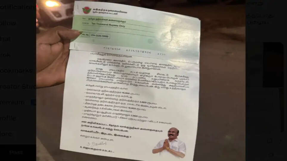 தேர்தலுக்குப் பிறகு வெற்றி பெற்றால் 10 ஆயிரம் ரூபாய் வழங்கப்படும் என்று அதிமுகவினர் காசோலை வடிவில் வடிவமைக்கப்பட்ட காசோலை கூப்பன்களை வாக்காளர்களிடம் விநியோகித்தனர். இதனைப் பார்த்த திமுகவினர் கையும் களவுமாக அதிமுகவினரை பிடித்து தேர்தல் பறக்கும் படையினரிடம் ஒப்படைத்தனர். வாக்களார்களை கவர்வதற்கு அதிமுக தேர்தல் அறிக்கையில் ஒவ்வொரு இல்லத்தரசிகளுக்கு வங்கி கணக்கில் 10 ஆயிரம் ரூபாய் போடப்படும் என்று வாக்குறுதி அளித்தனர்.