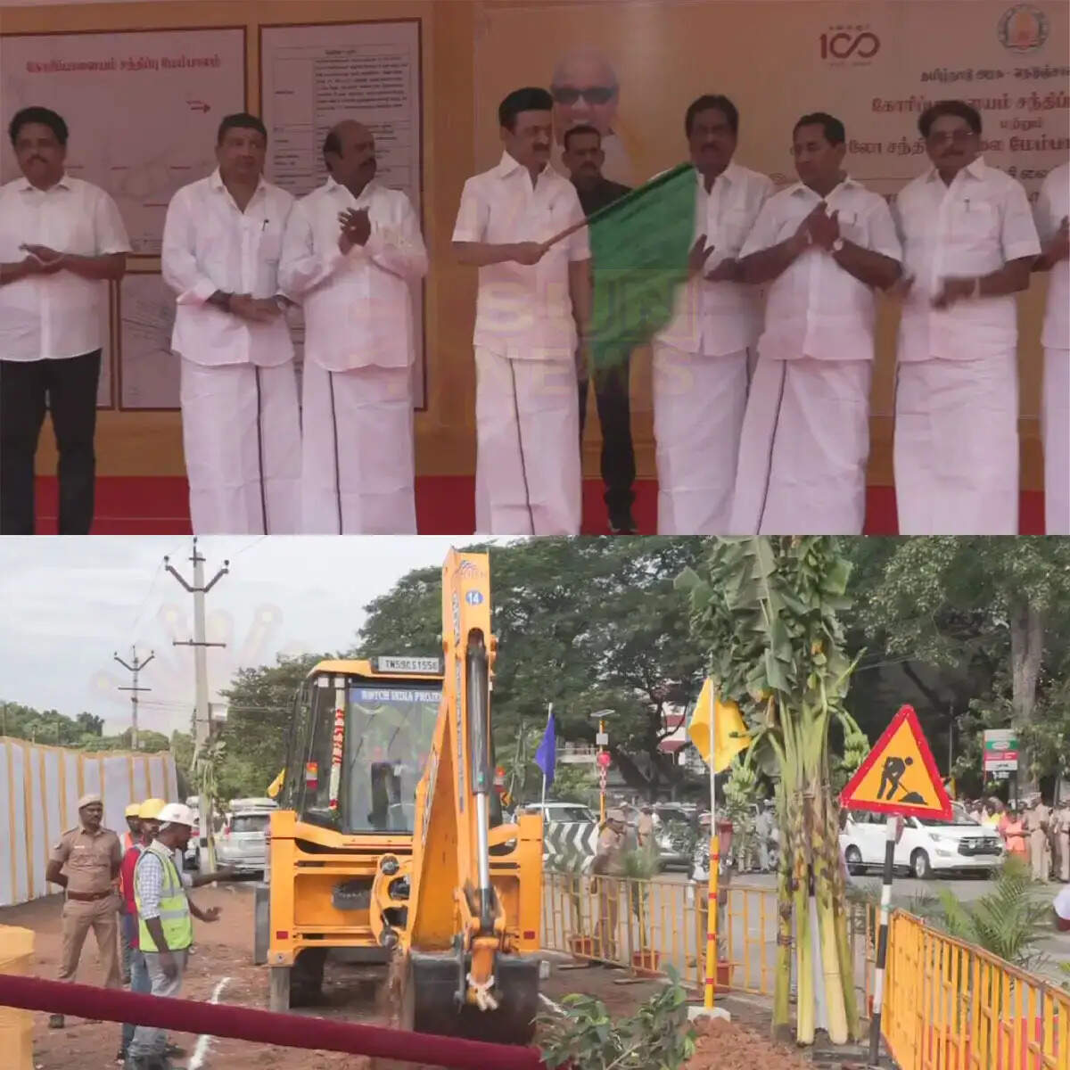 கோரிப்பாளையம் சந்திப்பில் ரூ.190.40 கோடி மதிப்பீட்டில் மேம்பால கட்டுமானப் பணி மற்றும் மதுரை தொண்டி சாலையில் ரூ.150.28 கோடி மதிப்பீட்டில் அப்பல்லோ சந்திப்பில் சாலை மேம்பாலம் மற்றும் வட்ட வடிவ சந்திப்பு அமைக்கும் கட்டுமானப் பணிகளை தொடங்கி வைத்தார்.