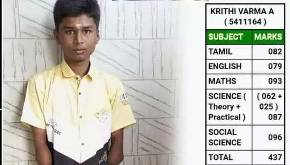 இதனை பார்த்து ஆச்சரியமடைந்த இவரது ஆசிரியர் ஆனந்தி, க்ரித்தி வர்மாவை நெடுமருதியில் உள்ள அரசு மேல்நிலைப் பள்ளியில் சேர்த்து படிக்க வைத்ததுடன் அவருக்கு தேவையான உதவிகளை செய்தார். இந்த நிலையில் இன்று வெளியான பத்தாம் வகுப்பு பொது தேர்வு முடிவில் க்ரித்தி வர்மா, 437 மதிப்பெண்கள் எடுத்து பள்ளி அளவில் முதலிடம் பிடித்துள்ளார். இரண்டு கைகளும் இல்லை, தந்தை ஆதரவும் இல்லை இருந்தாலும் தன்னம்பிக்கையை மட்டும் கைவிடாத க்ரித்தி வர்மா சிறப்பாக பயின்று பள்ளியளவில் முதலிடம் பிடித்துள்ள சம்பவம் அனைவராலும் பாராட்டப்பட்டு வருகிறது.