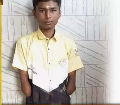 2 கைகளை இழந்த 10ம் வகுப்பு மாணவர், பள்ளியளவில் முதலிடம் பிடித்து சாதனை படைத்துள்ளார்.