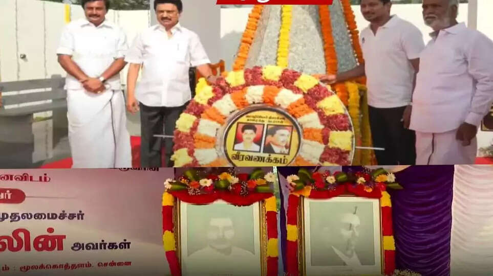 சென்னை மூலக்கொத்தளத்தில் இந்தி எதிர்ப்பு போராட்டத்தில் உயிர்நீத்த நடராசன், தாளமுத்து ஆகியோரின் புதுப்பிக்கப்பட்ட நினைவிடத்தை திறந்து வைத்து முதல்வர் ஸ்டாலின் மரியாதை செலுத்தினார்.