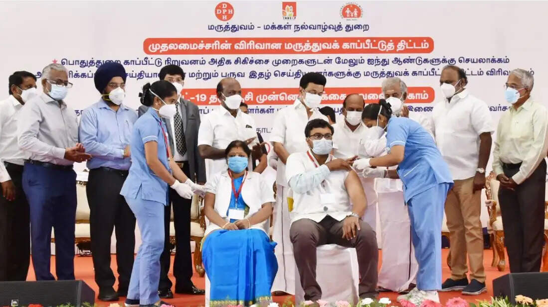 தமிழக முதல்வர் மு.க.ஸ்டாலின் சென்னையில் நேற்று நடைபெற்ற நிகழ்ச்சியில் சுகாதாரப் பணியாளர்கள், முன் களப்பணியாளர்கள் 60 வயதுக்கு மேற்பட்ட இணை நோய் உள்ளவர்களுக்கு முன்னெச்சரிக்கை தவணை தடுப்பூசி திட்டத்தை தொடங்கி வைத்தார்.