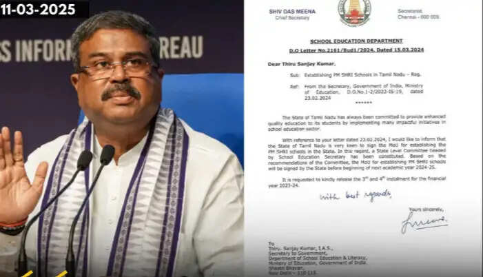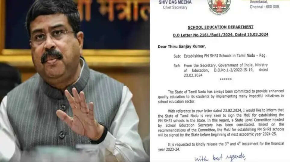 தமிழகத்தில் பிஎம் ஸ்ரீ பள்ளிகளை நிறுவ ஒப்புதல் தந்த கடிதத்தை வெளியிட்டார் மத்திய அமைச்சர் தர்மேந்திர பிரதான்.