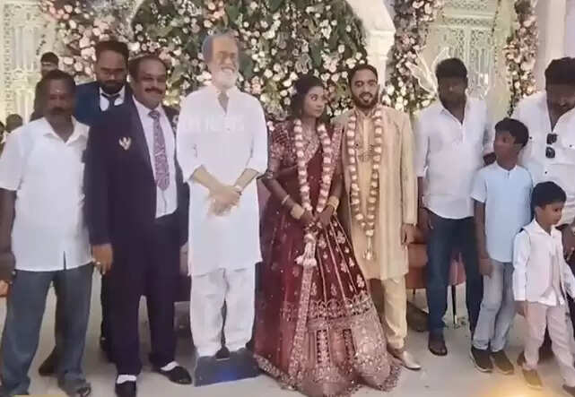 சென்னை திருவேற்காடு அடுத்த வேலப்பன்சாவடியில் உள்ள தனியார் திருமண மண்டபத்தில் நடிகர் ரஜினியின் தீவிர ரசிகரான ரஜினி பாஸ்கர் அவரது மகள் சுவேதா -சந்திப் ஆகியோரின் திருமண வரவேற்பு விழா நடைபெற்றது. இதில் நடிகர் ரஜினிகாந்த் கலந்து கொண்டால் எப்படி இருக்கும் என யோசித்த ரஜினி ரசிகர்கள் ரஜினி உருவம் பதித்த கட்டவுட்டை பரிசாக அளித்து ரஜினியே கலந்து கொண்டது போல கொண்டாடினர்.இது மணமகள் வீட்டாரை இன்ப அதிர்ச்சியில் ஆழ்த்தியது.ரஜினியின் தத்ரூப கட்டவுட்டில் பலர் செல்பி எடுத்து சென்றனர்.