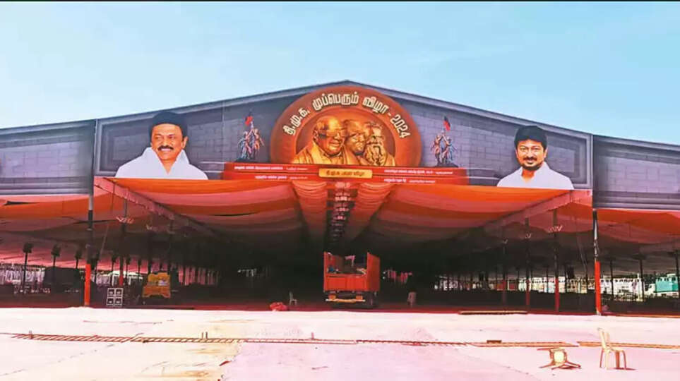 செப்.15-ம் தேதி முன்னாள் முதல்வர் அண்ணா பிறந்த தினம், செப்.17-ம் தேதி தந்தை பெரியார் பிறந்த நாள், அதே செப்.17-ம் தேதி திமுக தொடங்கப்பட்ட நாள் ஆகியவற்றை இணைத்து ஆண்டுதோறும் முப்பெரும் விழா கொண்டாடப்பட்டு வருகிறது. அந்தவகையில் இந்தாண்டு, திமுக தொடங்கப்பட்டு 75 ஆண்டுகள் நிறைவடைந்ததையொட்டி முப்பெரும் விழாவுடன் சேர்து பவளவிழா ஆண்டாக கொண்டாட திட்டமிடப்பட்டது. அதன்படி இன்று, சென்னை நந்தனத்தில் உள்ள ஒய்எம்சிஏ மைதானத்தில் விழா நடைபெறுகிறது. இதற்காக பிரம்மாண்ட ஏற்பாடுகள் செய்யப்பட்டுள்ளன.