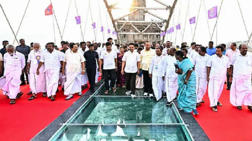 கன்னியாகுமரியில், திருவள்ளுவர் சிலை மற்றும் விவேகானந்தர் பாறை இடையே அமைக்கப்பட்டுள்ள கண்ணாடி இழைப்பாலம் கடந்த டிசம்பர் 30ஆம் தேதி தமிழக முதல்வர் மு.க. ஸ்டாலின் அவர்களால் திறந்து வைக்கப்பட்டது.