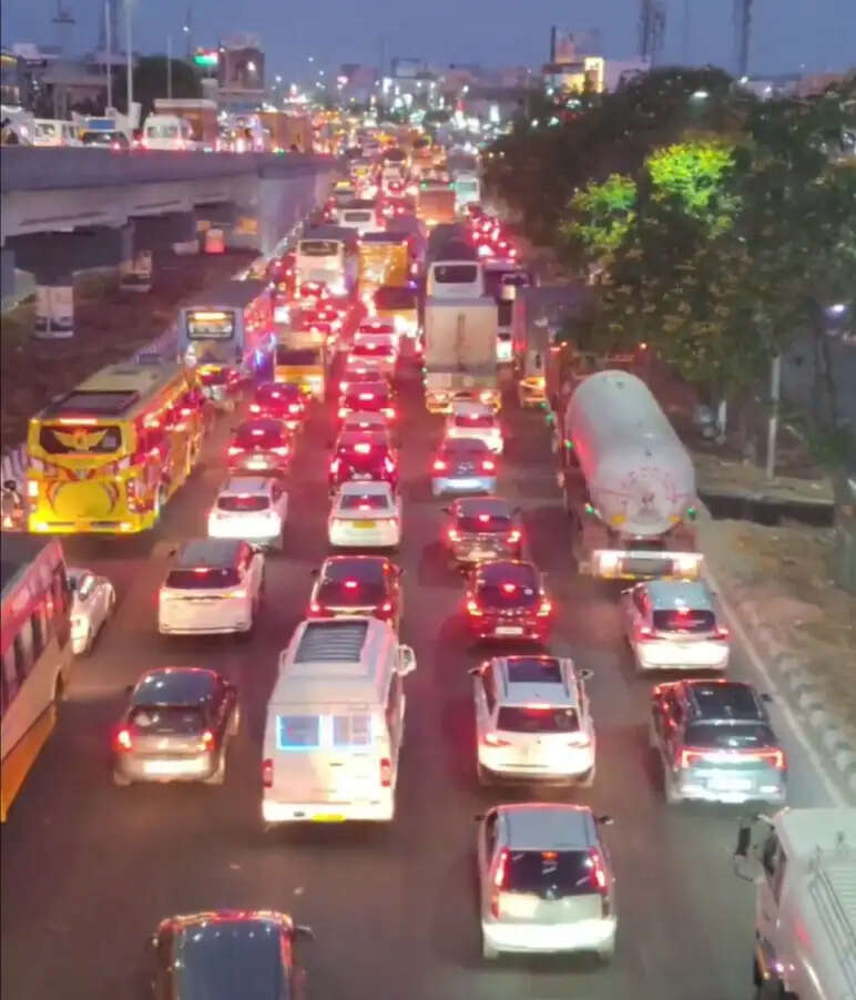 தனியார் மற்றும் அரசு பள்ளி மாணவர்களுக்கு தேர்வுகள் முடிவடைந்துள்ளது. நாளை சித்ரா பௌர்ணமி என்பதால் பெரும்பாலான மக்கள் திருவண்ணாமலை நோக்கி படைபெடுத்துள்ளனர். மேலும் சென்னையில் உள்ள மக்கள் தென் மாவட்டத்தை நோக்கி படையெடுத்துள்ளதின் காரணத்தினால் இருசக்கர வாகனங்கள் முதல் மூன்று சக்கர வாகனங்கள், கார், வேன், ஆம்னி பேருந்துகள், அரசு பேருந்துகள் தென் மாவட்டத்தை நோக்கி செல்கின்றனர். இதனால் சுமார் ஒரு மணி நேரத்திற்கும் மேலாக கடும் போக்குவரத்து நெரிசலில் பொதுக்களும் வாகன ஓட்டிகளும் சிக்கி தவிக்கின்றனர். இதனால் போக்குவரத்து நெரிசல் போலீசார் சரி செய்யும் பணியில் ஈடுபட்டு வருகின்றனர்.