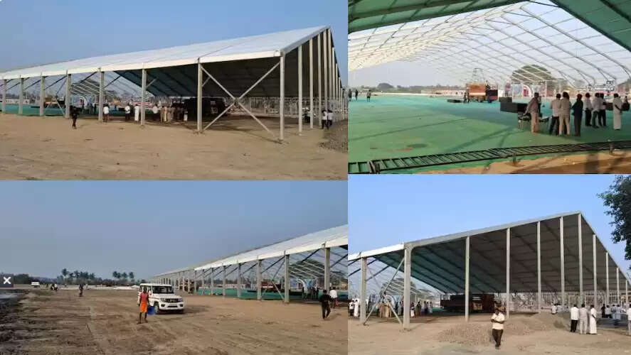 மதுராந்தகத்தில் சுமார் 35 ஏக்கர் பரப்பளவிலான மைதானத்தில், மேடை மற்றும் பந்தல் அமைக்கும் பணிகள் வேகமாக நடைபெற்று வருகின்றன. அதேபோன்று 10 ஏக்கர் பரப்பளவில், மூன்று ஹெலிகாப்டர்கள் தர இயங்குவதற்காக பிரம்மாண்டமான, எலிபேட் அமைக்கும் பணிகளும் நடைபெற்று வருகின்றன. சுமார் 25 கிலோமீட்டர் தூரத்திற்கு அதிமுக, பாஜக, பாமக உள்ளிட்ட கூட்டணி கட்சிகளின் கொடிகள் நடப்படும் என எதிர்பார்க்கப்படுகிறது. சென்னை புறநகர் பகுதியான வண்டலூரில் இருந்து மேல்மருவத்தூர் வரை பல்வேறு இடங்களில் வரவேற்பு பேனர்கள் வைப்பதற்கான பணிகளும் நடைபெற்று வருகிறது. இரண்டு லட்சம் கூட்டணி கட்சித் தொண்டர்கள் ? சுமார் 2 லட்சம் பேர் இந்த கூட்டத்தில் கலந்து கொள்ள ஏற்பாடு செய்யப்பட்டுள்ளது. மாலை 3 மணி அளவில் இந்த கூட்டம் நடைபெறும் என்பதால், மேல் கூரை அமைக்கும் பணிகளும் வேகமாக நடைபெற்று வருகிறது. பிரதமர் மோடி மற்றும் அமித்ஷா உள்ளிட்டோர் கலந்து கொள்ளக்கூடிய பொதுக்கூட்டம் என்பதால், 7 அடுக்கு பாதுகாப்பு வரை போடப்படும் என எதிர்பார்க்கப்படுகிறது. பொதுக்கூட்டம் நடைபெறும் மேடை அருகே, தலைவர்கள் ஓய்வெடுக்கும் அறைகளும் அமைக்கும் பணி நடைபெற்று வருகிறது. கூட்டணி கட்சித் தலைவர்களில் தொடங்கி, பொதுக் கூட்டத்தில் கலந்து கொள்ளும் தொண்டர்கள் வரை அனைவருக்கும் அனுமதி அட்டை வழங்கப்பட உள்ளது. முழுமையான பரிசோதனை செய்த பிறகு ஒவ்வொருவரும் பொதுக்கூட்டத்திற்குள் அனுமதிக்கப்படுவார்கள் என தகவல்கள் தெரிவிக்கின்றன.