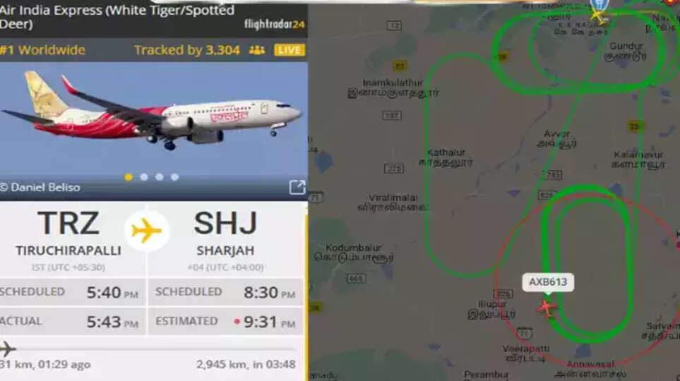 திருச்சியில் இருந்து சார்ஜா புறப்பட்ட ஏர் இந்தியா விமானத்தில் கோளாறு ஏற்பட்டதை அடுத்து, அது இன்னும் சில நிமிடங்களில் தரையிறங்க உள்ளது.