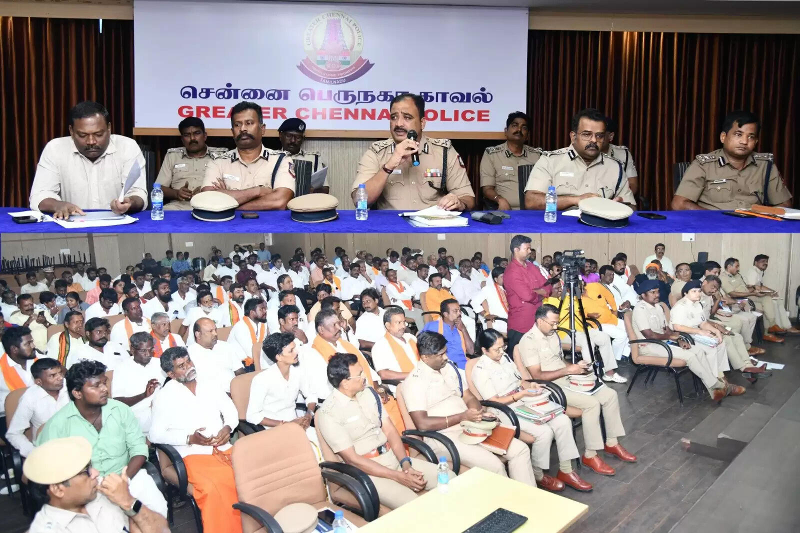 இதுகுறித்து வெளியிடப்பட்டுள்ள செய்திக்குறிப்பில், “சென்னை பெருநகர காவல்துறை சார்பில் விநாயகர் சதுர்த்தியை முன்னிட்டு, சிலைகளை வைத்து வழிபடும் பல்வேறு அமைப்பினருடன் கலந்தாய்வு கூட்டம் நடைபெற்றது. வருகிற 07.09.2024 அன்று விநாயகர் சதுர்த்தியை முன்னிட்டு, சென்னை பெருநகர காவல்துறை ஆணையாளர் ஆ.அருண், உத்தரவின்பேரில், சென்னையில் விநாயகர் சிலைகள் நிறுவுவது, வழிபாடு செய்வது குறித்தும் மற்றும் விநாயகர் சிலைகளை அமைதியான முறையில் கடலில் கரைப்பது குறித்தும், வருடந்தோறும் சென்னையில், பெருநகர காவல்துறையின் அனுமதி பெற்று விநாயகர் சிலைகளை வைத்து வழிபட்டு வரும் அமைப்பினருடன் இன்று (28.08.2024) காவல் ஆணையரகத்தில் கலந்தாய்வு கூட்டம் நடத்தப்பட்டது.