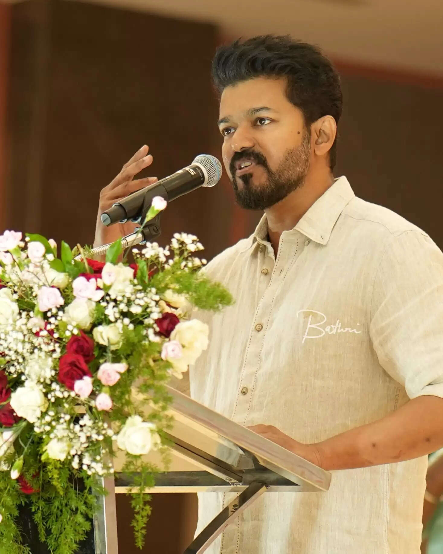 கல்வி விருது விழாவில் பேசிய நடிகரும், தவெக கட்சியின் தலைவருமான விஜய், நடந்து முடிந்த பத்தாம் வகுப்பு மற்றும் பன்னிரண்டாம் வகுப்பு பொதுத் தேர்வில் தேர்ச்சி பெற்ற மாணவர்களுக்கும் , அவர்களுடன் பெருமையாக வந்திருக்கும் அவரது பெற்றோருக்கும், இந்த நிகழ்ச்சி சிறப்பாக நடக்க காரணமாக அமைந்துள்ள பொதுச்செயலாளர் ஆனந்துக்கும் , தமிழக வெற்றி கழகத்தினுடைய தோழர்களுக்கும், மற்றும் என் நெஞ்சில் குடியிருக்கும் என் நண்பர் நண்பிகளுக்கும் உங்கள் அனைவருக்கும் என்னுடைய பணிவான வணக்கங்கள்.