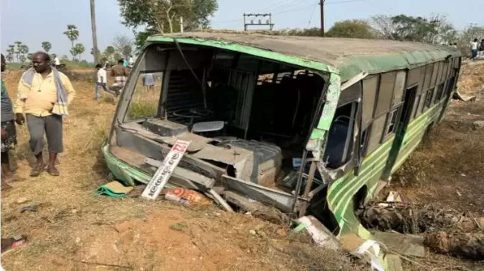 10 அடி பள்ளத்தில் கவிழ்ந்த பேருந்து! திருவண்ணாமலையில் பரபரப்பு