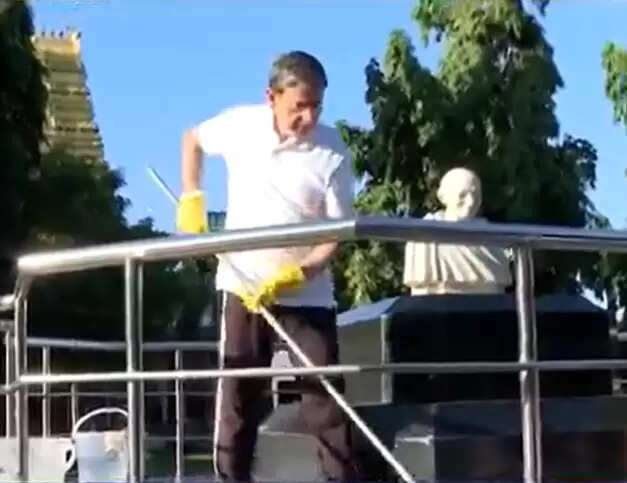 காந்தி ஜெயந்தியை முன்னிட்டு சென்னை காந்தி மண்டபத்தில் "தூய்மையே சேவை" என்ற வெகுஜன தூய்மை பணியை ஆளுநர் ஆர்.என்.ரவி தொடங்கி வைக்கிறார். இந்த தூய்மை சேவை மூலம், தன்னார்வலர்கள், பள்ளி, கல்லூரி மாணவர்கள் காந்தி மண்டப வளாகத்தில் உள்ள தியாகிகள் நினைவிடங்களை தூய்மை செய்தனர். காந்தி சிலையில் தண்ணீரை ஊற்றி தூய்மை பணியை தொடங்கிய ஆளுநர் ரவி, குப்பைகளை சேகரித்தபின், வளாகத்தை பார்வையிட்டு மாணவர்களுடன் குழு புகைப்படம் எடுத்துக்கொண்டார். முன்னதாக தூய்மை திட்டத்தில் கலந்துகொள்ளும் மாணவர்கள் மற்றும் தன்னார்வலர்களுடன் ஆளுநர் "தூய்மையை வலியுறுத்தும் உறுதிமொழியை" எடுத்துக் கொண்டார்.