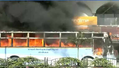 அடையாறில் சென்னை மாநகர பேருந்து திடீரென சாலையிலே தீப்பற்றி எரிந்தது