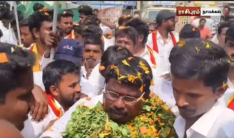 இந்நிலையில் நாமக்கல் கிழக்கு மாவட்ட செயலாளர் ஜே. ஜே.செந்தில் நாதனை மாரியம்மன் கோவிலில் இருந்து மாலை அணிவித்து நிர்வாகிகள் படை சூழ அண்ணா சாலை வழியாக பட்டாசுகள் வெடித்து ஊர்வலமாக அழைத்துச் சென்றனர். ராசிபுரத்தில் முக்கிய போக்குவரத்து நெரிசல் மிகுந்த சாலையான அண்ணா சாலை, ஒரு வழிப்பாதை வழியாக 2 மணி நேரமாக ஊர்வலம் சென்றதால் ராசிபுரம் முழுவதும் போக்குவரத்து நெரிசல் ஏற்பட்டு பொதுமக்கள் கடும் அவதி அடைந்தனர்.
